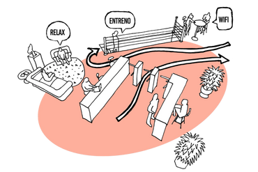 El objeto del concurso eran 6 zonas de diversos usos en el complejo de oficinas World Trade Center de Barcelona. Se trataba de diseñar una sala de fitness y entrenamiento funcional con vestuarios, una sala de descanso y ocio para trabajadores, un aparcamiento de bicicletas, una sala de taquillas para scooters, y un showroom informativo.